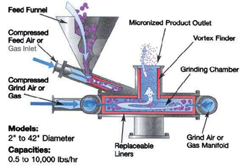 POWDERIZERS Features and Benefits: -Reversible impact liner for longer life 50 to 15,000 #/hr. -Optional materials finishes -Suitable for heat sensitive products -Full automation possible -Easy disassembly and cleaning -Externally lubricated bearings -Air purged bearing cartridge -Narrow particle size distribution Applications -Calcium Carbonate -Sodium Bicarboate -Acrylic Resin -Graphite -Lime Stone -Silica Gel -Mica -Lactose Fertilizers -Coatings -Magnesium Hydroxide -StarchAmmonium -Phosphate -Pigments -Zinc Oxide -Gypsum -Pharmaceuticals -Iron oxide -Many More